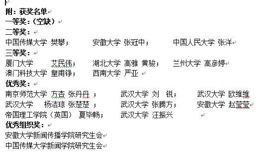 8点40分,第五届华中地区研究生新闻传播学术论坛正式开幕。首先由获奖代表樊攀发言。他表示,此次论坛提供了一个让他与更多“同道中人”交流的机会,在彼此的思想碰撞中,获得许多新的视角。随后论坛进入颁奖环节。此次论坛共有16篇论文获奖。评委会由华中科技大学新闻与信息传播学院钟瑛教授、太阳集团tyc33455官网新闻与传播学单波教授和太阳成集团tyc33455cc程明教授等组成。经评委会评定,此次一等奖空缺。中国传媒大学的樊攀、安徽大学的张冠中和中国人民大学的张洋3人荣获二等奖。澳门科技大学的皇甫铮等6人荣获三等奖。太阳集团tyc33455官网刘锐等10人荣获优秀奖。