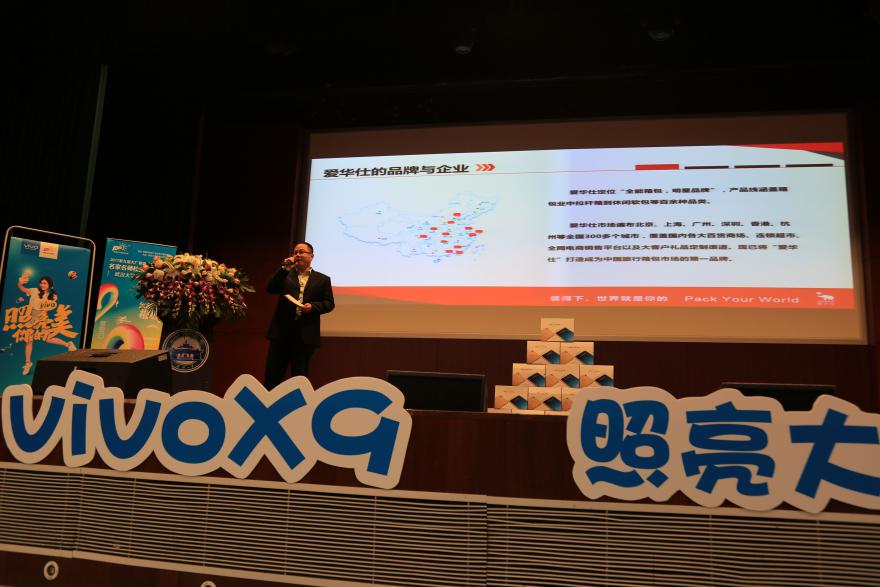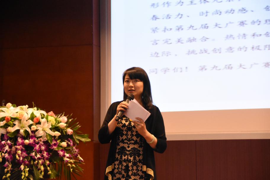 作为第九届大广赛首席合作单位,vivo智能手机公司品牌经理孙冬青女士发表讲话。首先,她为大家介绍vivo公司相关信息,并播放了精彩视频。接下来,孙女士为大家重点解析了vivo的相关命题,强调贴合“照亮你的美”主题,让各位同学对于创作方向及重点有了更进一步的了解。孙女士也与台下同学进行了简单的有奖问答互动。